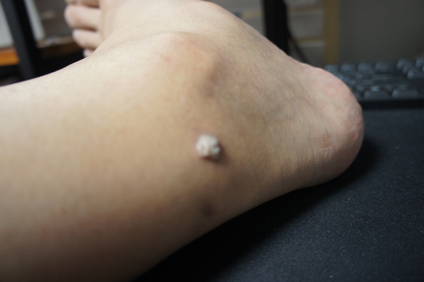 그전에 네이버에 찾아봤을 때 번질 수 있다는 내용을 봤지만, 귀담아 듣지 않았는데 이게 번진다고 생각하니 더 지체할 수가 없었습니다. 그러고 보니 제 오른팔뚝에도 물사마귀가 하나 있었다는 사실을 알아차렸습니다. 팔에 있는 사마귀와 발목에 있던 사마귀를 연관시켜 생각해 본적이 없는 저로서는, 상황의 심각성을 절감했습니다.