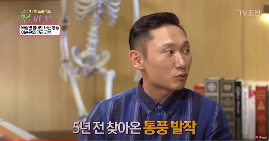 인기 프로그램 "나는 자연인인다"를 진행하고 있는 두 mc중 한 명인, 이승윤은 지난 2017년 한 종편 채널 프로그램에 출연하여 자신의 통풍 사실을 밝혔습니다. 방송 당시 몇 년 전에 찾아온 통풍으로 인해 가끔 한번씩 증상이 있다고 고백했습니다. 엄지발가락부터 시작된 고통으로 인해 밤에 잠을 잘 수 없을 뿐더러, 몸을 뒤척이지도 못할 만큼 고통스러웠다고 당시 상황을 전했습니다. 그나마 다행인 건 통증이 지속되지 않고, 1년에 한 번 정도 재발한다고 했는데요. 패널들의 안쓰러움을 자아냈습니다.
