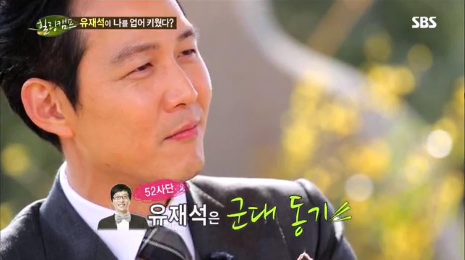 2013년 이정재는 SBS 힐링캠프에 출연하여 자신 평발 사실을 다시 한번 밝혔습니다. 아울러 보충역 군복무를 통해 당대 최고의 국민MC 유재석과의 인연 또한 공개하게 되었습니다.