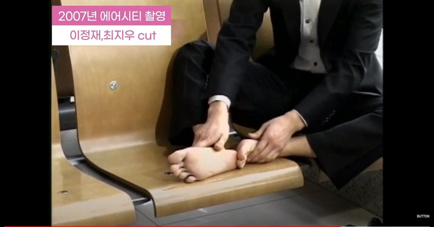 또한, 2007년 MBC 주말드라마 '에어시티'에 출연했던 이정재는, 당시 한류스타 최지우와 함께 60억의 제작비가 투입된 대작 드라마로 화제가 되기도 했는데요. 드라마 포스터 촬영당시 장시간 촬영에 지친 배우들이 쉬는 시간에 이정재 혼자 맨발로 쉬면서 발을 주무르는 모습이 카메라에 잡히기도 했습니다.