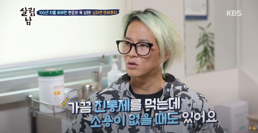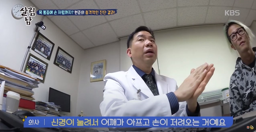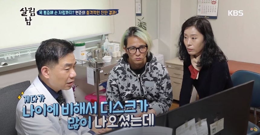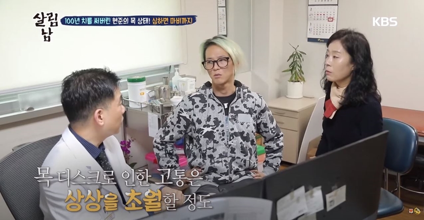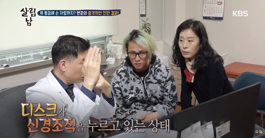 대한민국 스트릿댄스 댄서이자 팝핀 장르의 선구자와 같은 팝핀현준. 지난 KBS 예능프로그램 '살림하는 남자들'에서 건강검진을 통해 목디스크 상태를 확인하게 되었습니다. 검사 결과 디스크가 튀어나와 신경조직을 누르고 있는 상태이고, 어깨가 아프고 손이 저린 이유인 것으로 밝혀졌습니다. 팝핀현준의 상태는 나이에 비해 디스크 상태가 안좋으며 일반인보다 100년은 더 쓴 상태에 비유되었습니다. 그는 고통으로 인해 잠을 못자서 진통제를 먹어도 진통제 효과가 없을 때가 있다고 고백했습니다. 꼭 건강 회복하셔서 멋진 모습 무대에서 보여주셨으면 좋겠습니다.